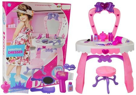 Zestaw Piękności Toaletka dla dziewczynki z Lusterkiem Dźwiękami Światłem Stołeczek