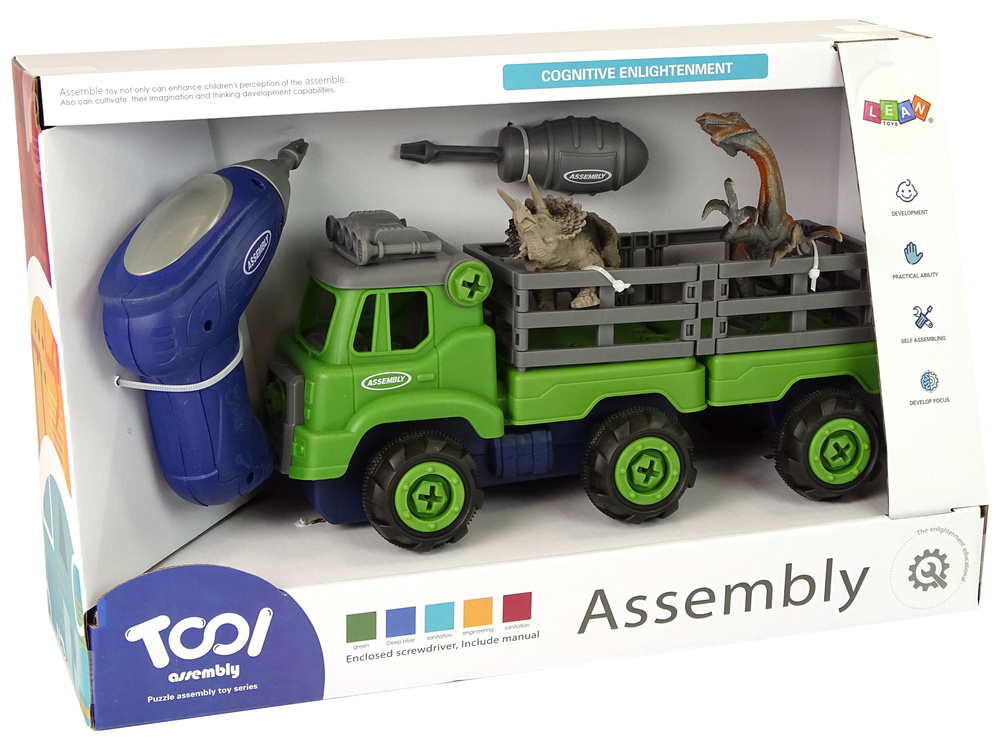 The set includes a screwdriver and a screwdriver so that he can start tinkering. The possibility of unscrewing and screwing up various elements such as wheels or the upper part of the cabin will enhance his precision and develop manual skills. The car is equipped with screws which fix individual elements of the truck.