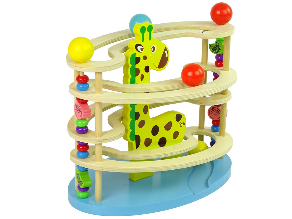 A colourful slide with a giraffe for balls is great fun and will teach your child how spherical shapes move on inclined surfaces. The slide consists of 4 levels, which have to be overcome by a ball placed by the child.