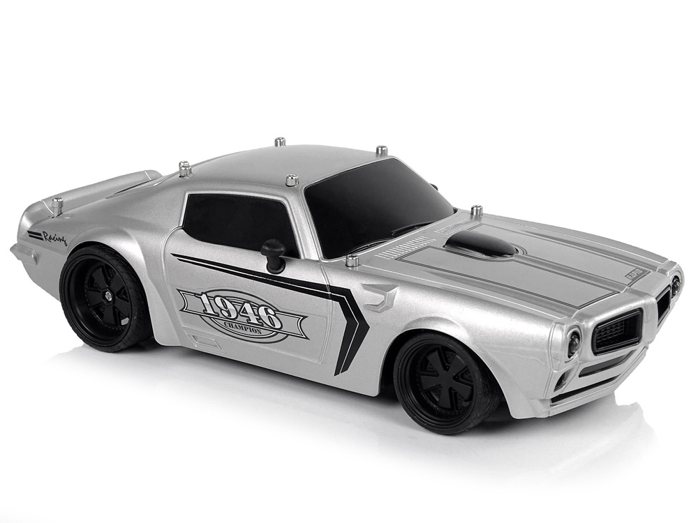The car has a lightweight and robust construction, a sporty design with black windows and black details on the bonnet and 1946 Champion stickers. Rubber tyres guarantee grip on the ground when steering. Driving the vehicle is great fun especially for the youngest, so the remote control included in the kit will allow you to steer the little car model, has two separate buttons for forward/reverse and sideways driving.