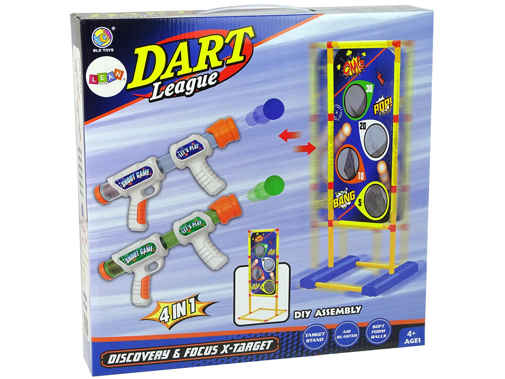 The set has the possibility of four variants of positioning the board: 2x vertical, angled, and almost horizontal. The instruction manual will enable correct assembly, which will require concentration and logical thinking skills from the child. Two ball guns will allow for joint competition. Each has 12 balls.
