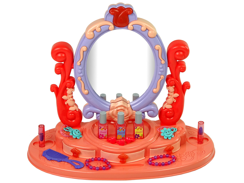 The toy has been designed with the youngest girls in mind, so it has been manufactured from certified, fully safe materials. The design of the dressing table and the dressing table patterns add a chic and elegant touch.
