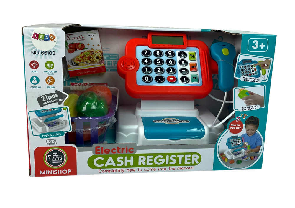 It is powered by 2x 1.5V "AA" batteries, which are not included. The cash register is packaged in a decorative, colourful box, making it perfect for a gift. The toy is intended for children over 3 years of age. The set is CE certified and complies with standard EN 71.