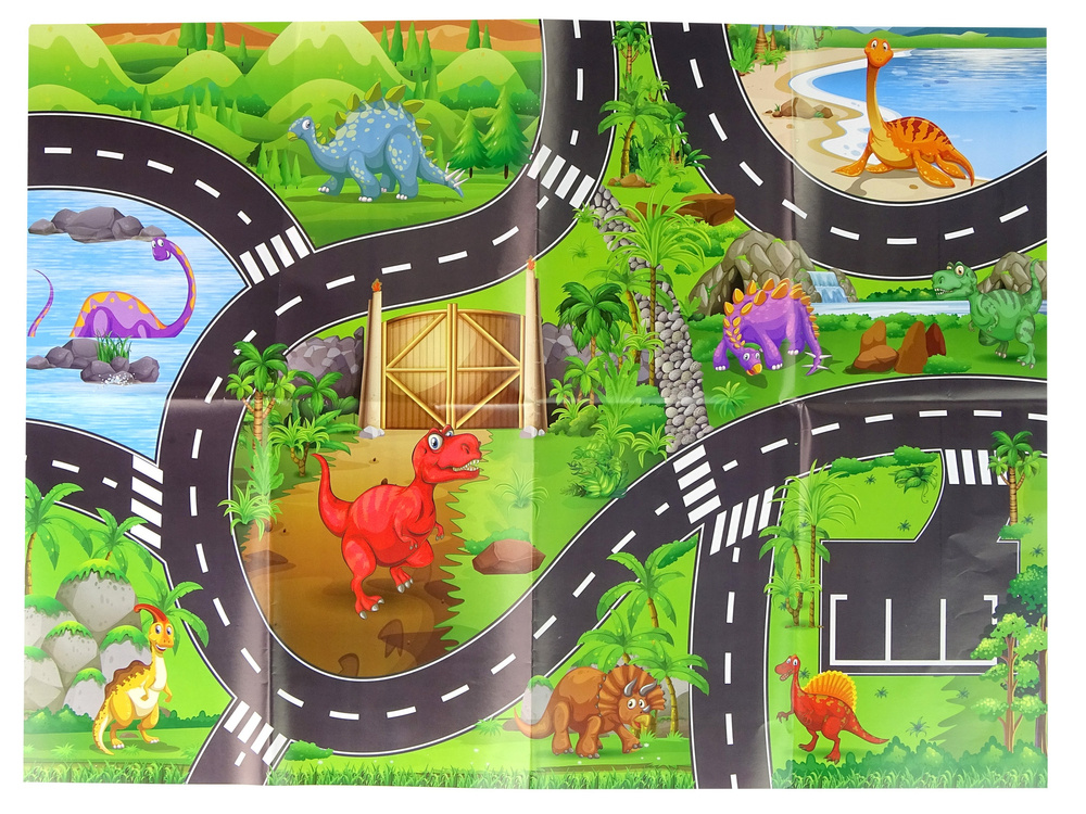 The cars are made with the smallest detail and accuracy. There are 43 pieces in the set, each one is individual, in a different colour and with a different design. All cars have a pull-back drive. Just pull back and let go and they will develop incredible speed. The board with the environment will allow you to imagine the dinosaur town in a realistic way. Just set up all the pieces and start racing!