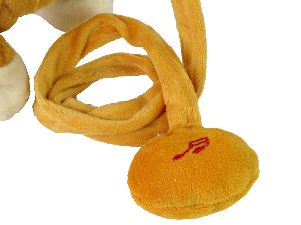 The horse is made with the utmost care, brown in colour, soft to the touch with a light-coloured mane. The interactive four-legged friend roars and plays a melody. After inserting the batteries, simply press the handle from the leash and he walks led on the leash, moving his tail and head, accompanied by friendly country music.