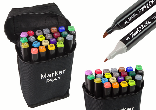 This set of 24 markers in diverse and saturated colours is for everyone who is starting out in drawing and for those who draw every day. The excellent pigmentation of the alcoholic ink contained in the markers guarantees that the drawings made with them will be clear, saturated and will not fade for a long time.