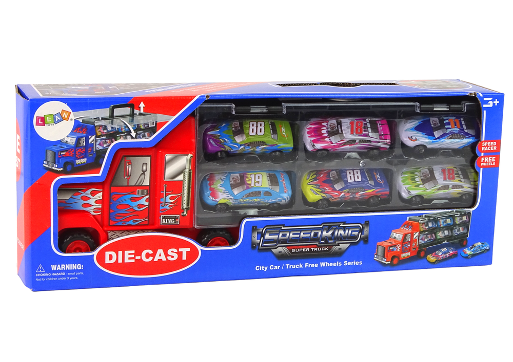 The set can be conveniently stored, as all sports cars fit into the truck trailer. The cars are made of plastic, making them lightweight, safe and durable.