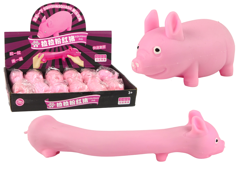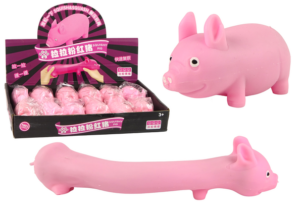 The pig looks just like the real thing, with its pink colour and cute little tail. It can be stretched, squeezed and deformed.