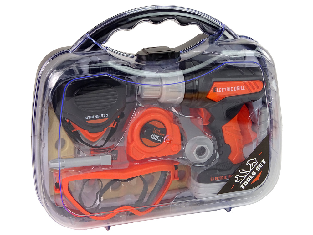 The whole set is enclosed in a handy carrying case. Inside the tools are made of plastic. The screwdriver is battery-powered, after inserting the batteries and pressing the button the drill bit spins and also makes a realistic sound. When working, he can wear safety goggles and a mask for safety. During precision work, a small centimetre tape will come in handy and a saw for cutting out. All the components make work easier and teach the user how to operate.