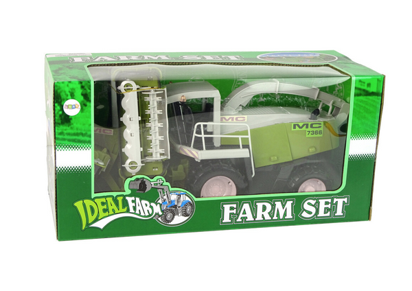 - The Farm Set is an exciting and realistic green harvester for little lovers of country life. Made of durable plastic, it offers long-lasting fun. Movable parts and practical opening elements make it the perfect toy.