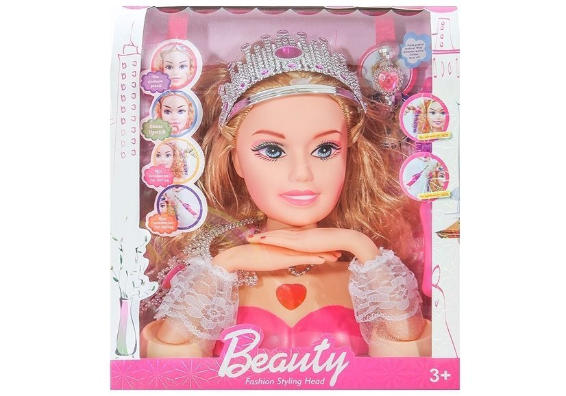 The head of the doll is designed for exercises in creating interesting hairstyles, which will guarantee all little girls long hours of fun. The doll will be a perfect surprise for children over 3 years of age who love to imitate their older friends, sisters or mother. The toy head is packed in a box with a transparent glass-case, it is made of attested and safe materials, has a CE certificate, making it perfect as a gift.