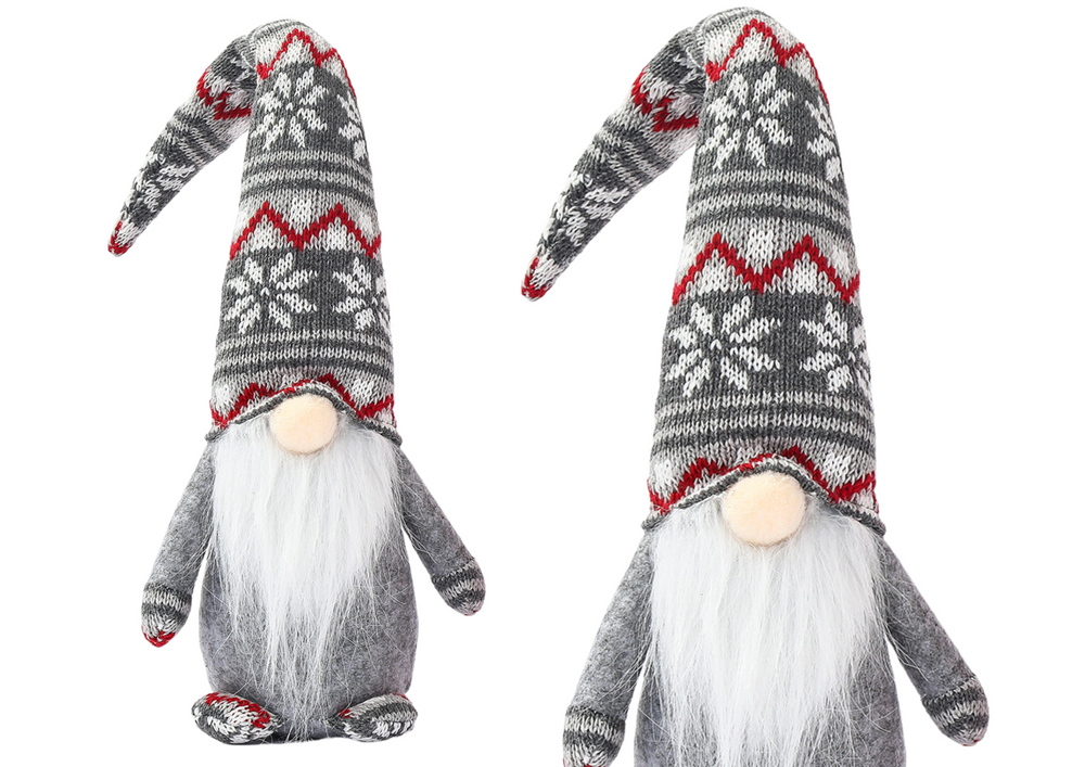 - A grey Christmas gnome with a grey-red hat that can be freely shaped thanks to a wire. Thanks to the balanced load, it stands stable. Made from soft, pleasant to the touch material. Dimensions 40 cm x 16 cm.