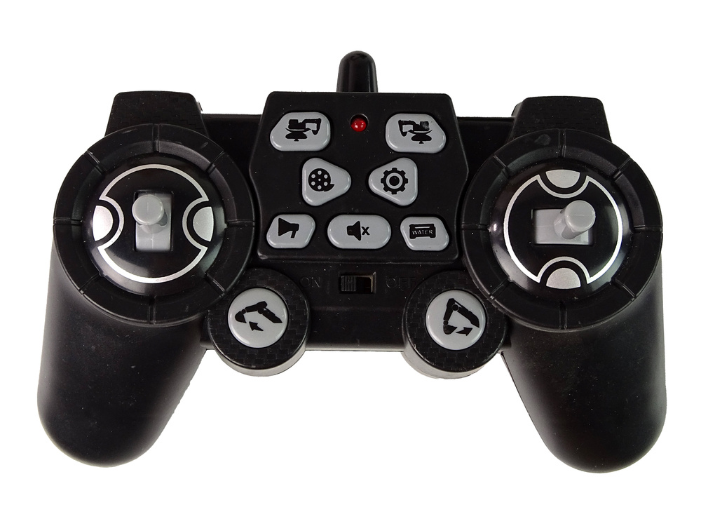 The remote control, powered by batteries, allows full control of the vehicle. Moving forward, backward, sideways and turning around its own axis provide unlimited maneuverability.