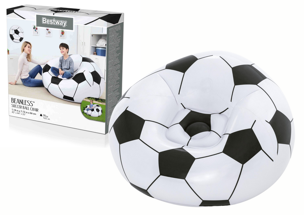 An interesting pattern will certainly attract the attention of every little fan. From now on, watching your favorite matches will be even more enjoyable. A comfortable armchair with a backrest will provide a moment of relaxation for the youngest, it will also be perfect for studying or reading books on the terrace. The design of the chair will ensure maximum comfort, regardless of what position you take in it. In addition, it is perfect for indoor and outdoor use. It is made of durable PVC material, so you will not have to worry about damage. The repair patch included in the set will provide you with additional protection against unwanted damage.