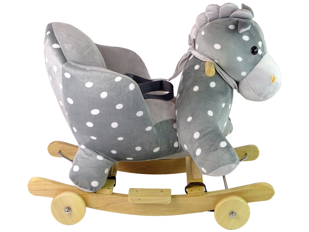 - The 2-in-1 rocking horse ride-on in gray with white dots is a multifunctional and safe toy that combines the classic shape of a rocker with a practical ride-on for active play at home.