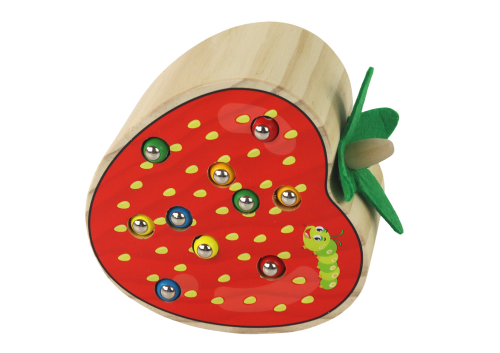 Wooden Strawberry Catch the Worm Magnetic Game