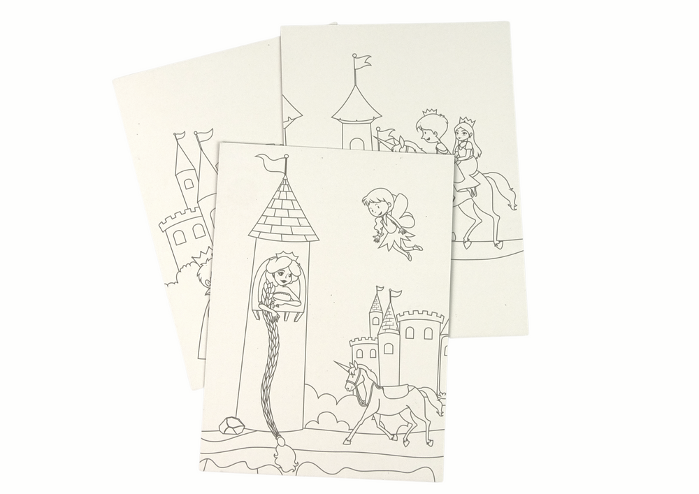 In the set you will find 9 pictures for scratching, which come to life in front of the child's eyes. The fun is simple: using a special wooden stick, you can scratch off the black layer on the image, revealing beautiful and colorful illustrations. These illustrations show a variety of scenes from the kingdom.
