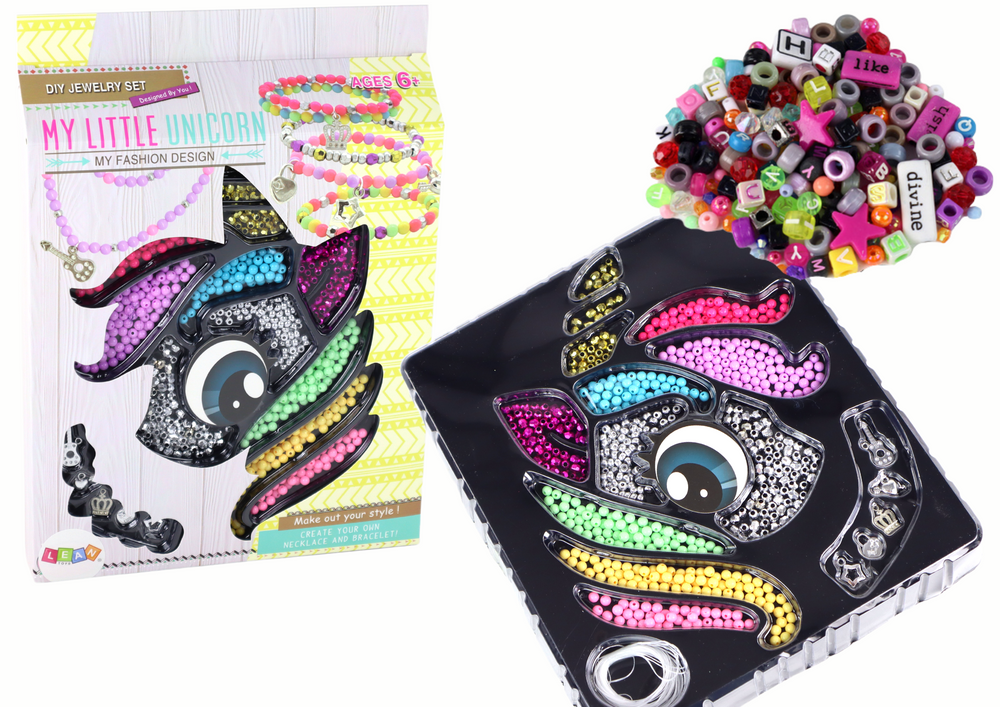 A set of beads with a unicorn motif is a real treasure for creative souls. The package contains as many as 2,000 beads that bloom in a variety of shapes and colors. You will find gold, silver, pink, purple, green, yellow, blue and many other shades, allowing you to create personalized jewelry that will perfectly match any occasion.