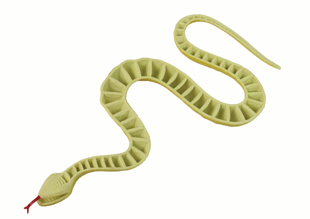 - Yellow rubber snake with red patches - a perfect toy and decoration. Safe for children, flexible and creative entertainment.