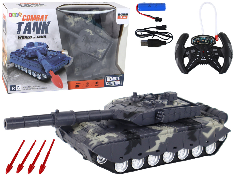 The set includes a remote control with which you can control the tank's movements. You can steer it right, left, forward and backward, giving you full control over the toy.