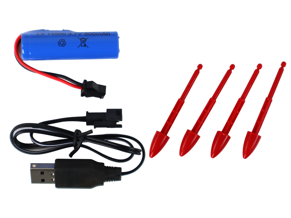 The set includes four darts that can be fired from the tank's barrel. This adds an element of competition to the game and allows you to "shoot" targets.