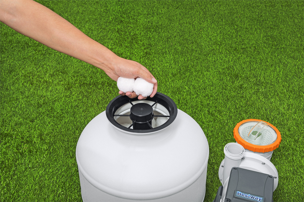 - Bestway 58486 Sand Pump: ecological, efficiency 11355 L/h, 500W motor, 6 operating modes, chemical dispenser for the cleanliness of the pool.