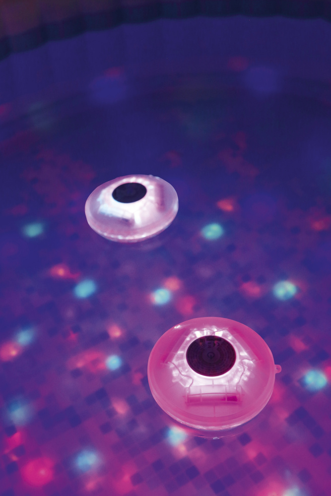 Romantyczny wieczór w basenie ogrodowym? A może szalona zabawa przy blasku zmieniającego się światła? Już teraz dzięki pływającej lampie LED każdy relaks w basenie ogrodowym będzie niepowtarzalny. To nowoczesne urządzenie oferuje cztery barwy światła (czerwony, niebieski, żółty i zielony) i aż siedem trybów migania.  Lampa LED jest łatwa w obsłudze, wystarczy włożyć do niej trzy baterie AA (brak w zestawie),umieścić na powierzchni wody i wcisnąć przycisk na górze lampki. Nie potrzebujesz kabli ani podłączenia do źródła energii. To innowacyjny produkt, który delikatnie oświetli powierzchnię wody w obszarze 2,43 m szerokości i głębokość 1,52 m. Automatycznie wyłączy się również po godzinie bezczynności.
