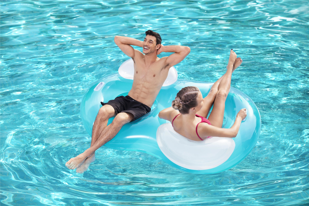 - Take an inflatable swimming ring with you - perfect for two people. Comfortable and stable, made of PVC resistant to damage and rays. With built-in headrests and drinking holders. Easy to use and store.