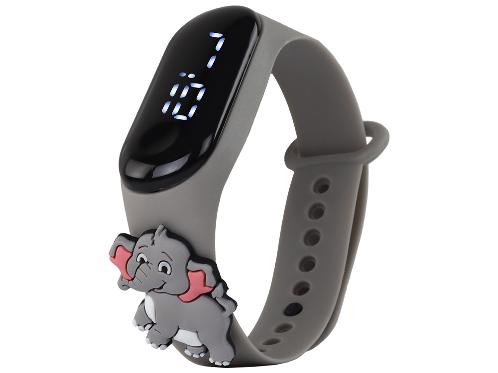 A charming touchscreen watch with an elephant motif on a gray band. This modern watch was created with the youngest users in mind, combining functionality with a fun and colorful style.