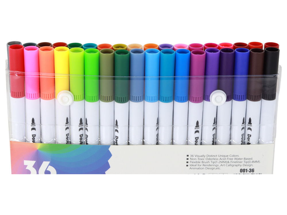 - Discover creativity with a set of 36 double-sided markers in an organizer. Intense colors, high quality, perfect gift.