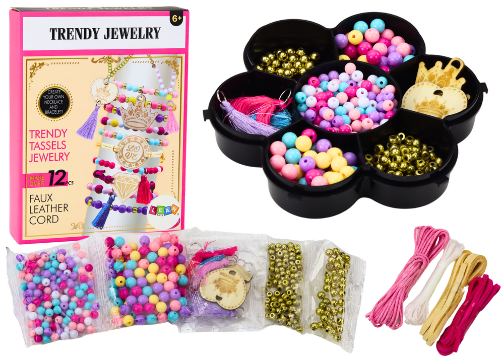The bracelet making kit is a real treasure trove for young creators who want to express their uniqueness by creating unique jewelry. The abundance of beads in various colors and sizes opens the door to unlimited design possibilities. Wooden pendants add character and personality to each bracelet.