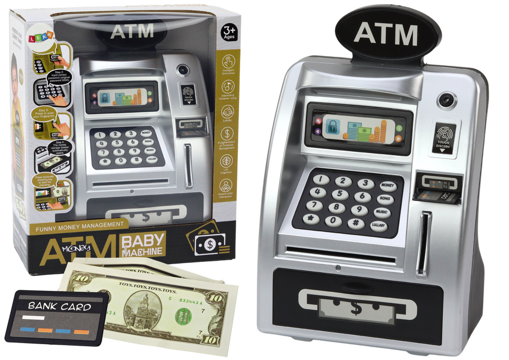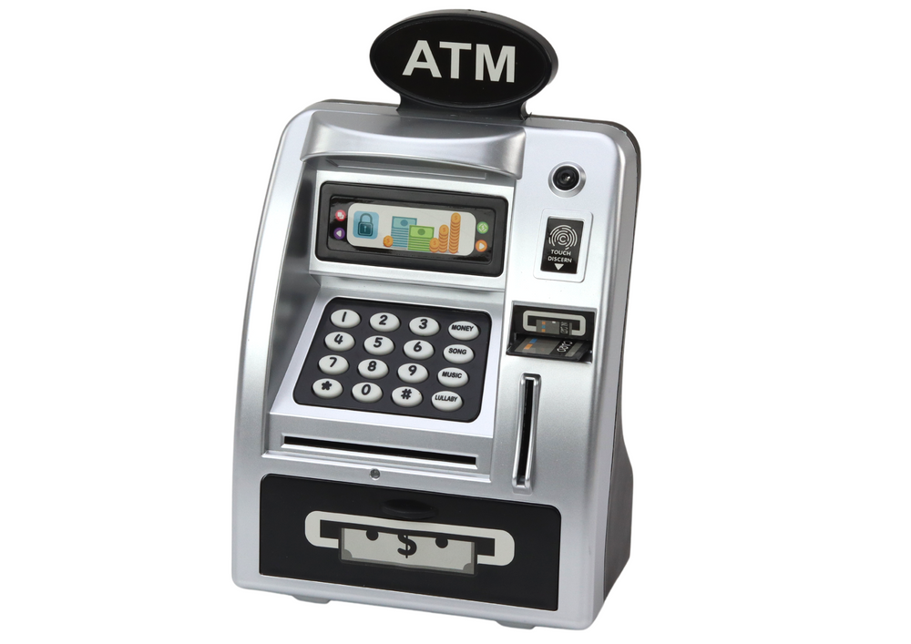 - An ATM for children is not only an aesthetic gadget, but also a functional educational tool. Includes sound, light and fingerprint functions for added security.