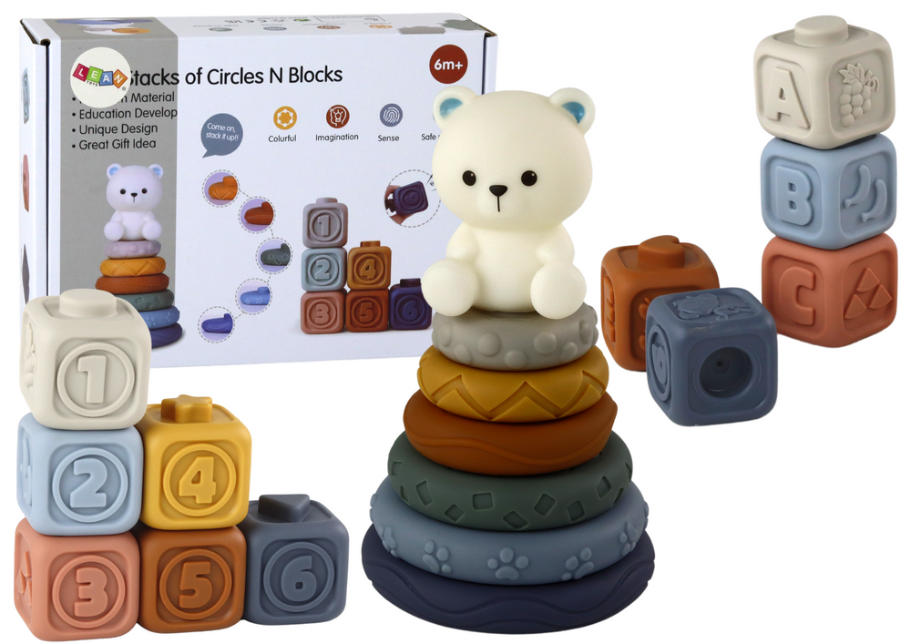 The Educational Set for Toddlers is an excellent proposition for the youngest children, combining learning and fun in one. Thanks to various elements, such as a pyramid with a bear and educational soft blocks, the toddler develops their manual, cognitive and sensory skills in a natural and pleasant way.