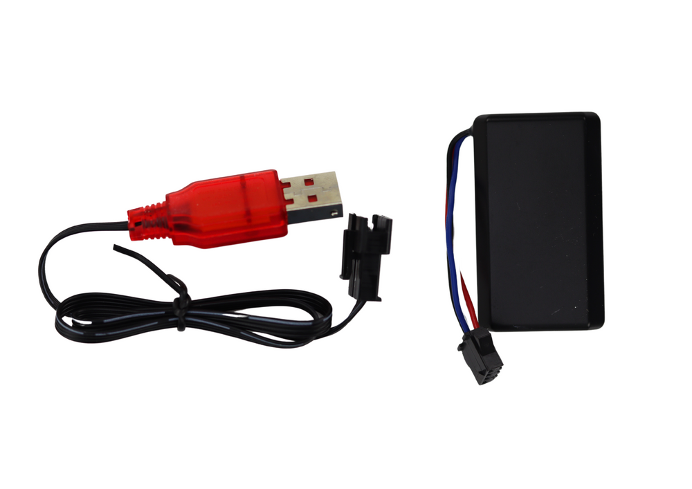 The rifle is powered by a 7.4V 500mAh battery, which is included in the set. A charger is included with the battery.