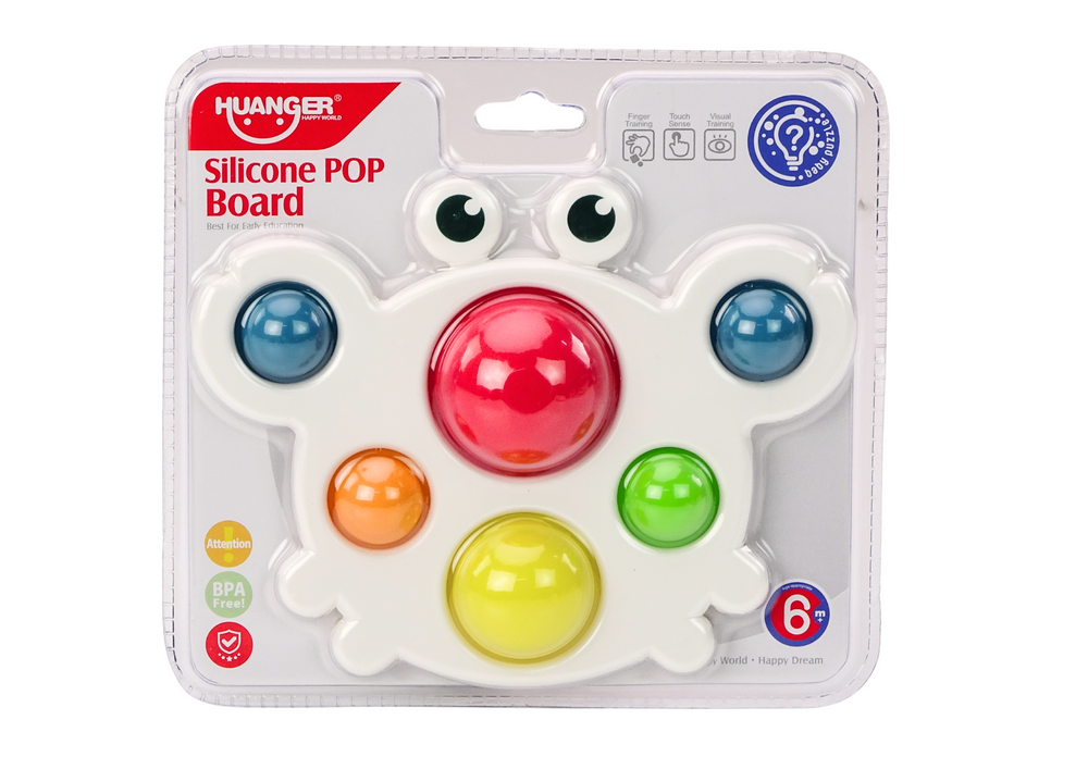 - The Crab board is a toy designed to develop sensory skills in the youngest children. It has colorful silicone recesses in 6 different colors that can be squeezed through to the other side.