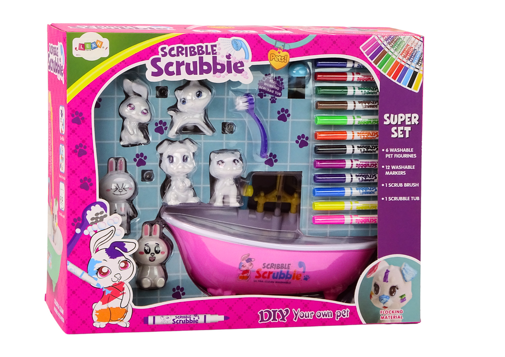 - The animal painting and washing set is a unique toy. Six cute animal figures, 12 special markers. Additionally, the set includes a bathtub and a brush, which allows you to wash the paint off the figures and repaint them,