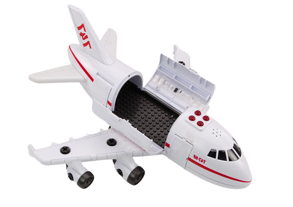 - Large passenger plane for assembly. Realistic design, opening doors and cabin. Tool kit. Light and sound effects. Develops construction skills and logical thinking. Perfect for little aviation fans.