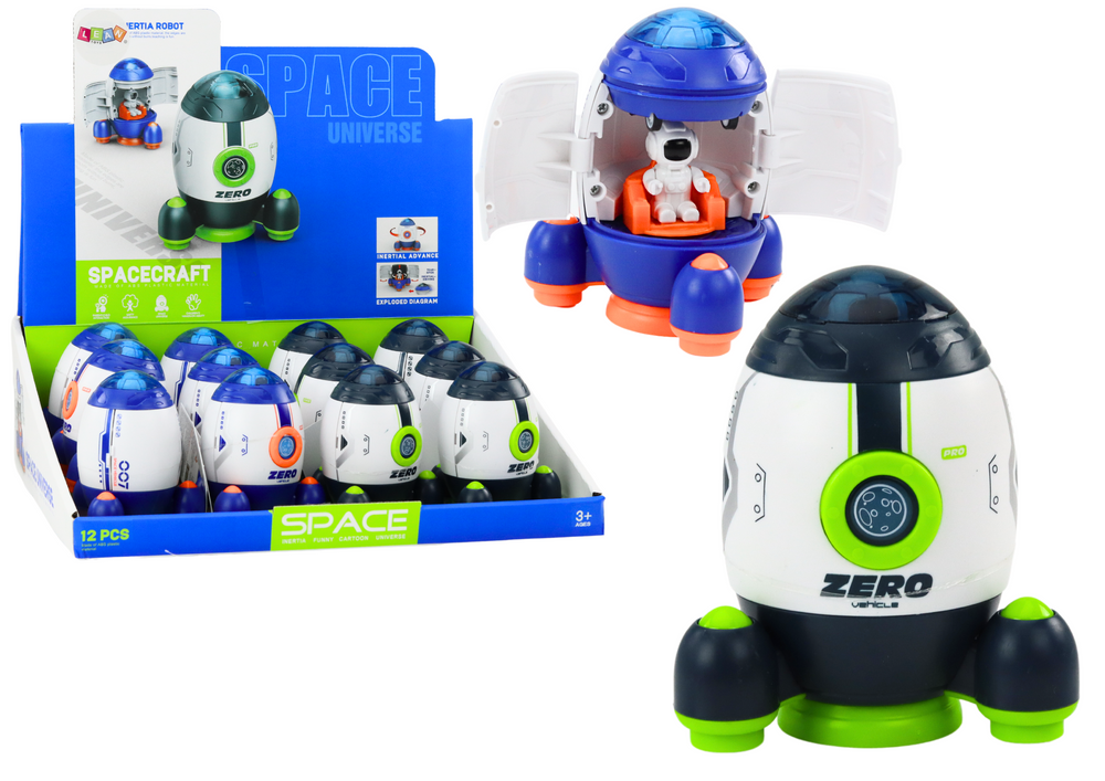 The rocket has an opening function, so children can look inside and discover surprises. Inside the rocket there is a figure of a cosmonaut ready to explore unknown galaxies. The set also includes a space vehicle with a tension drive, which allows for dynamic play and creative scenarios.