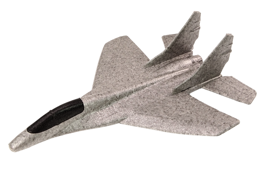 - The gray Styrofoam plane is a light and unique toy. Thanks to a slingshot on a rubber band, he sets off on an airborne journey with impetus. Perfect for safe and creative play for children and adults, developing imagination and sense of coordination.