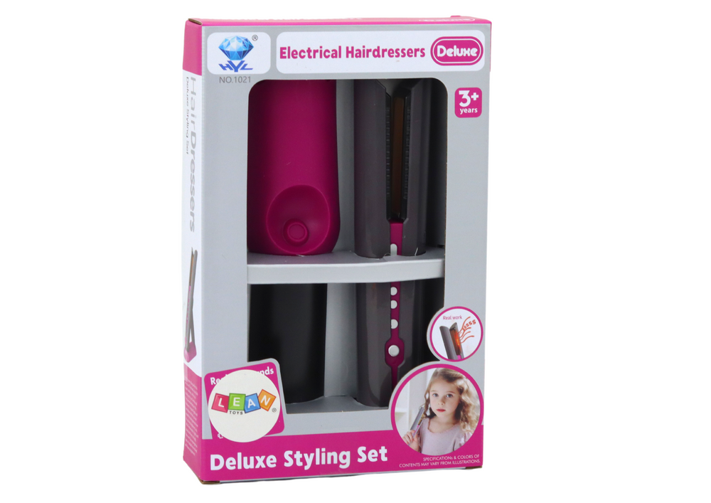 - The toy hair straightener for children is a faithful replica with realistic sounds and light effects. The set comes with a stand, adding authenticity to the fun. Great fun for little stylists!