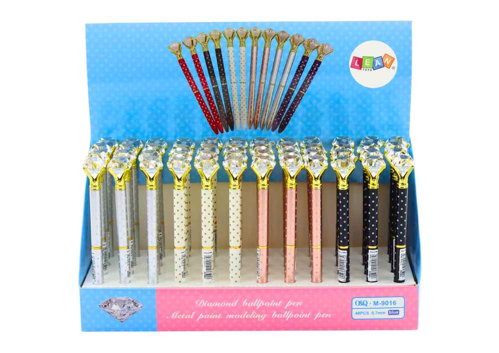 - This elegant polka dot pen with a large sparkling diamond will delight both children and adults. With blue ink, it is the perfect choice for everyday use and play.