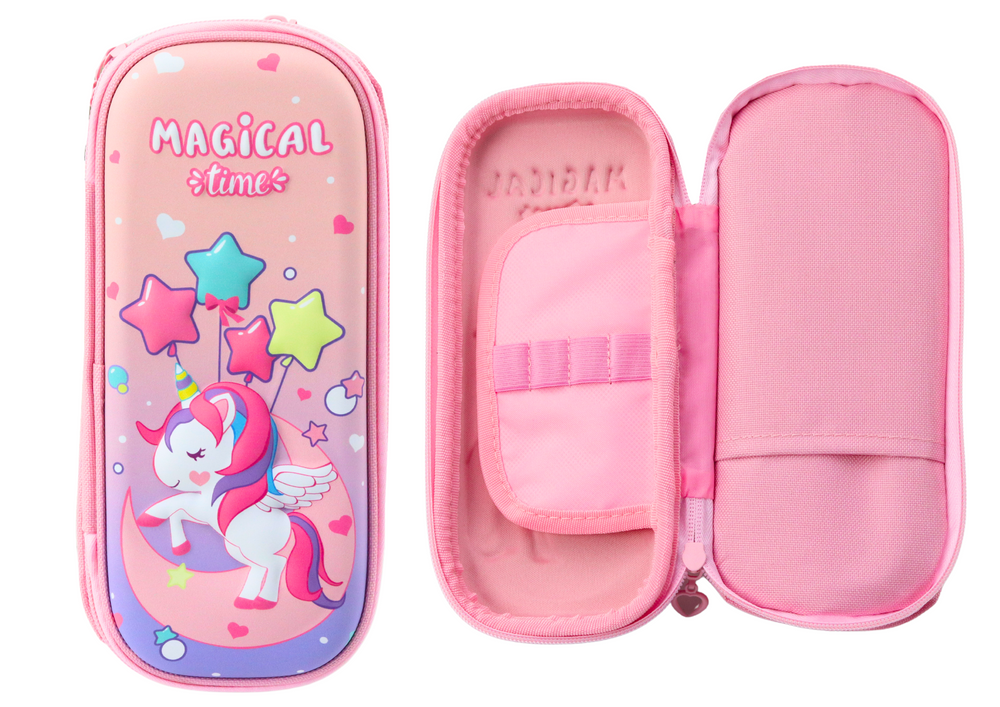 A pencil case with unicorn graphics is the perfect choice for young lovers of these creatures who want to combine functionality with a charming design. Made of high-quality stiffened material, which ensures long-term use even in intensive school use. The unicorn graphics add a magical and girlish charm that will surely attract attention and bring a smile to the face of every child.