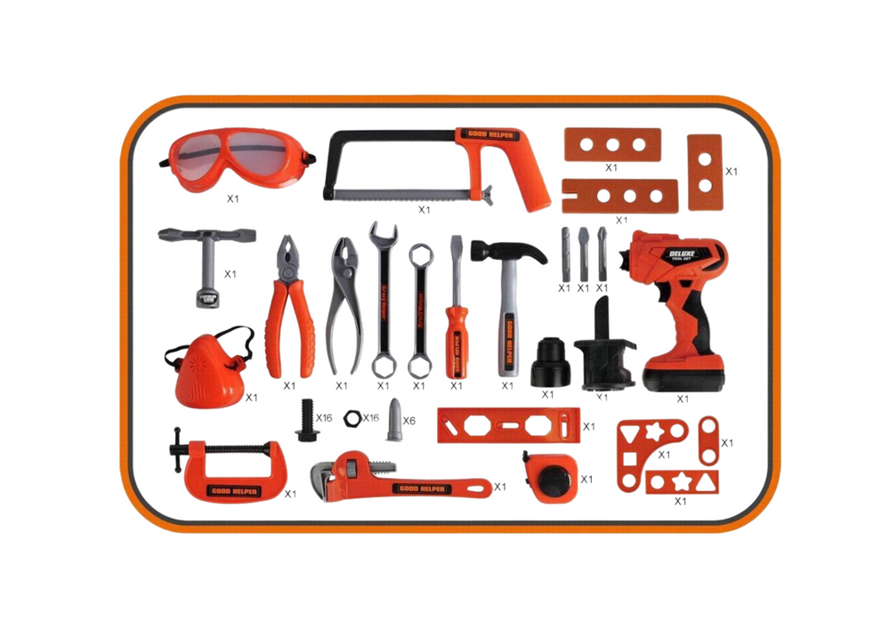 The tools are well-made and refined, made entirely of plastic. Thanks to the box in which they are packed, you can always put them away in their place after finishing work and easily move them from place to place. The drill makes sounds like a real one and is perfectly shaped, so it fits into every little hand. Your toddler will discover the secrets of repairs and create their own home constructions using the included tools!