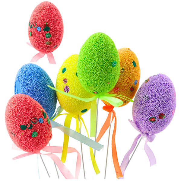 - Finish: Styrofoam beads and leaves, ribbon in the color of the egg