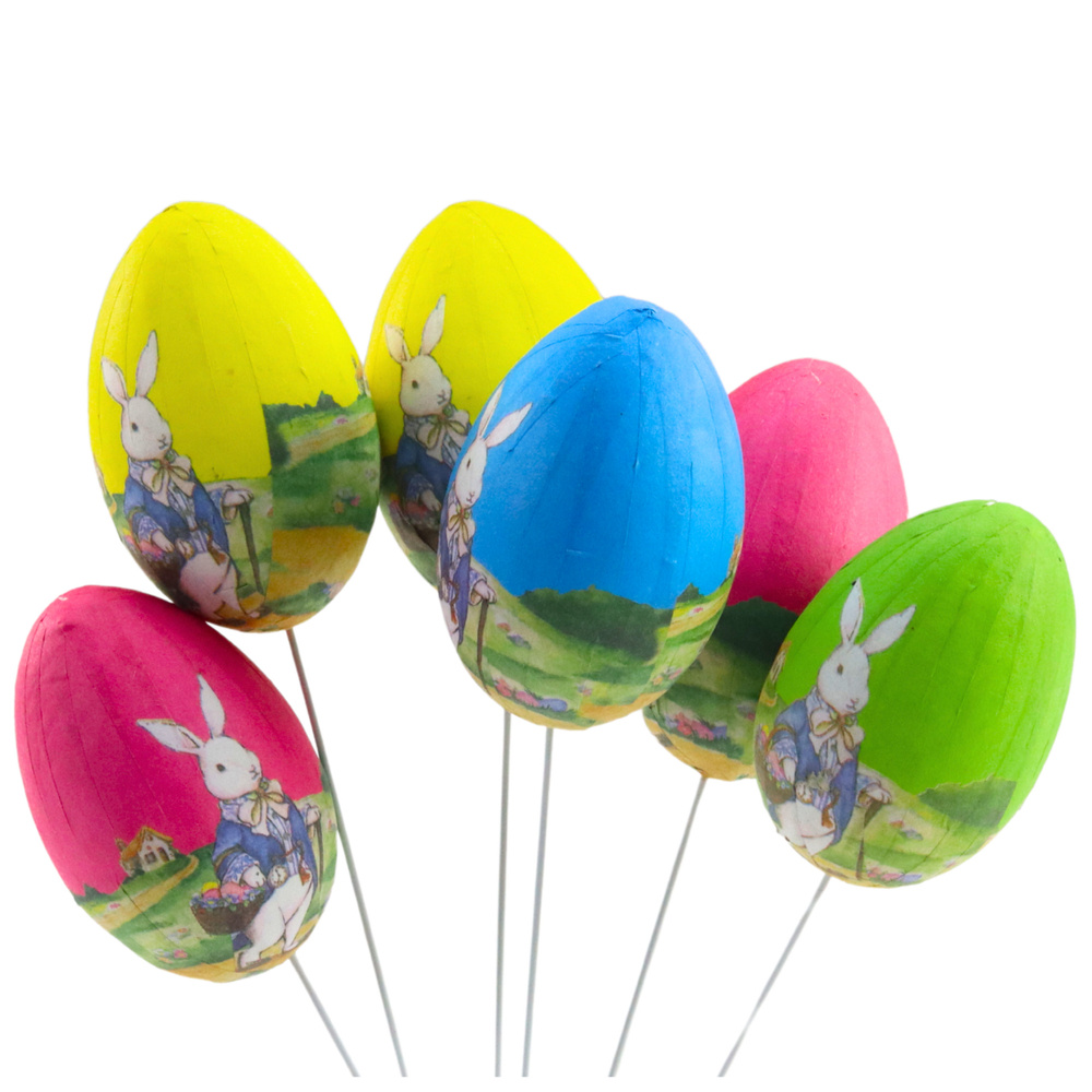Easter Eggs on a Wire Pick Bunny with a Basket Decoration 6pcs