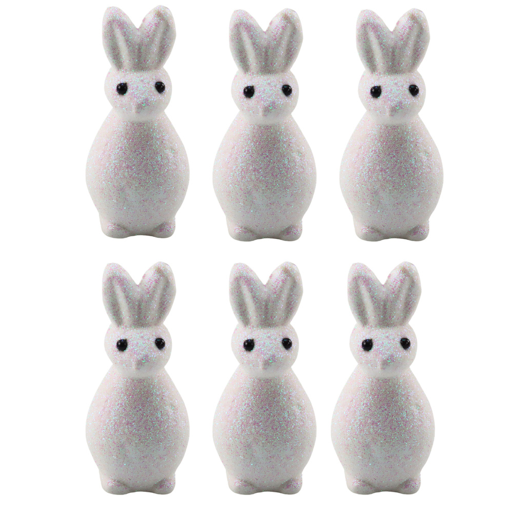 Styrofoam Easter Bunnies Glitter Decorative White 6pcs