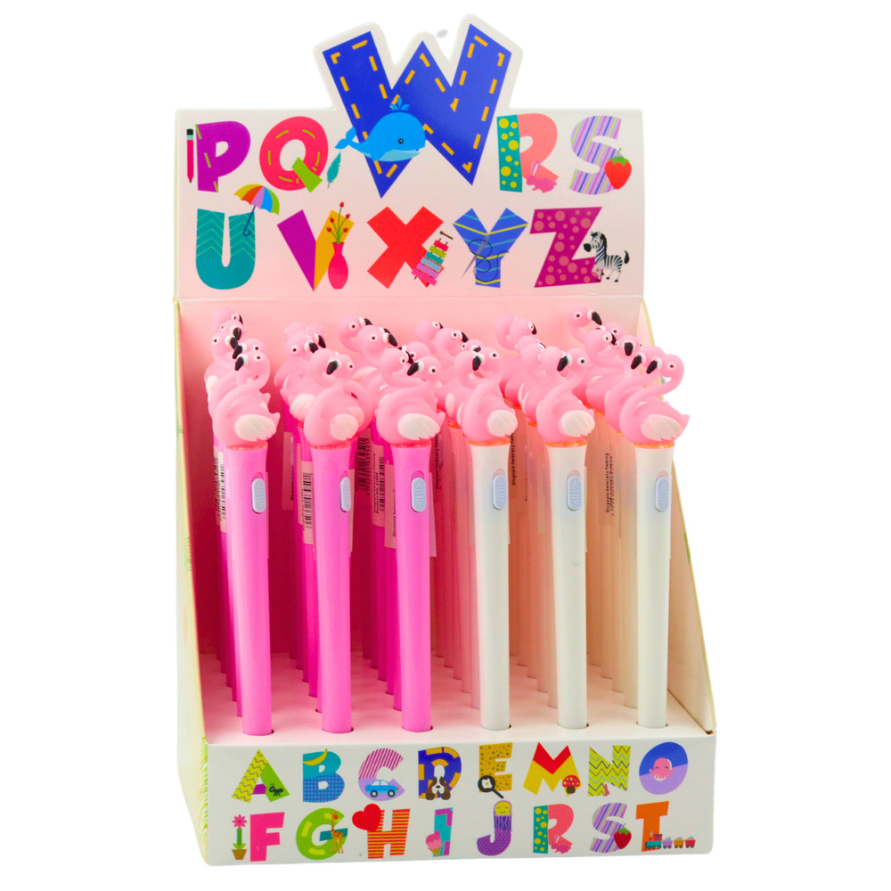 - The flamingo glow pen is a unique gadget that will delight every child with its charming appearance and functionality. It stands out with its fairy-tale design - the colorful body is finished with a rubber flamingo figure