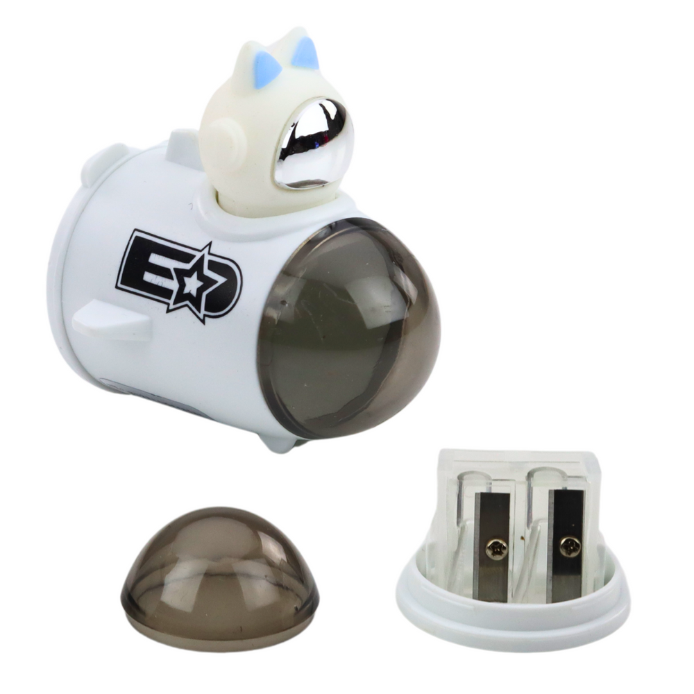 - The spaceship-shaped sharpener with a funny alien figure is a unique combination of functionality and fantastic design. The original form inspired by the galaxy and alien civilizations attracts attention.