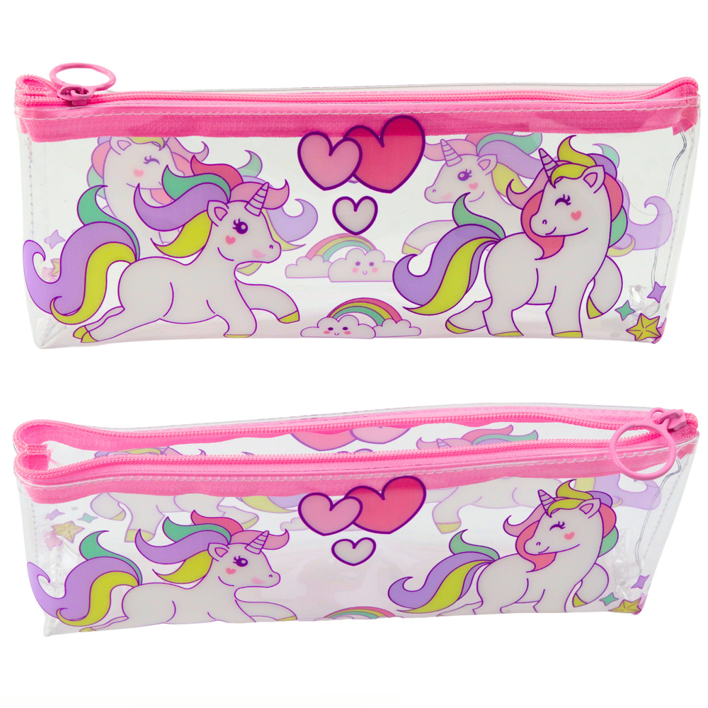- A charming pencil case for girls with a unicorn motif is a perfect addition to the school supplies of every little princess. The transparent casing with colorful unicorns, hearts and stars makes the pencil case an eye-catcher