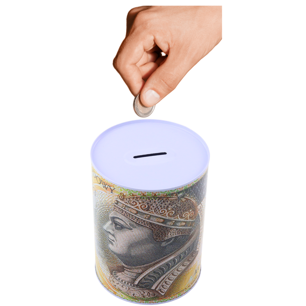 - A metal money box with a 200 PLN banknote motif is a great solution for people who want to save effectively and avoid impulsive spending of their accumulated funds. Its solid construction made of steel guarantees durability and resistance.